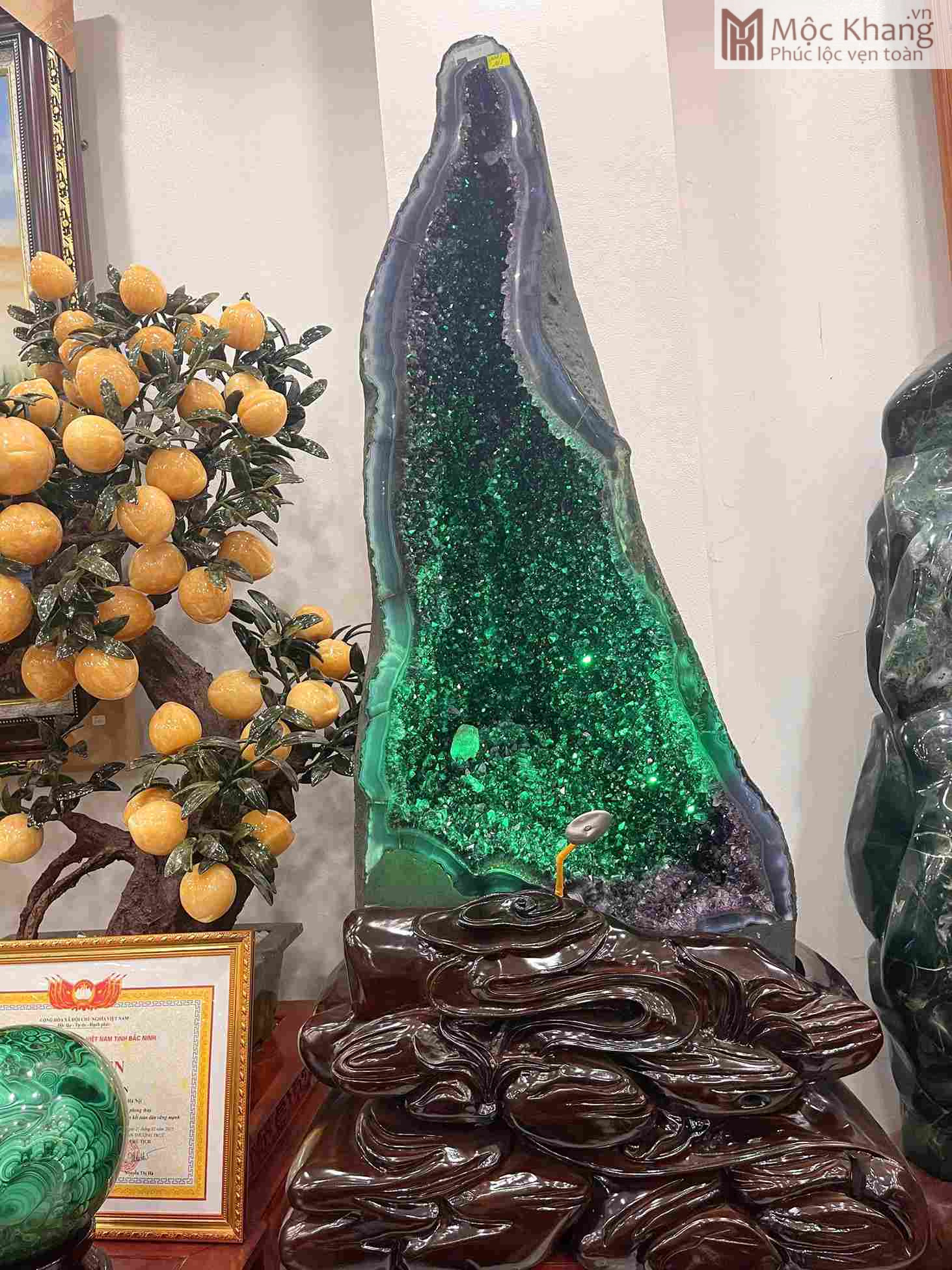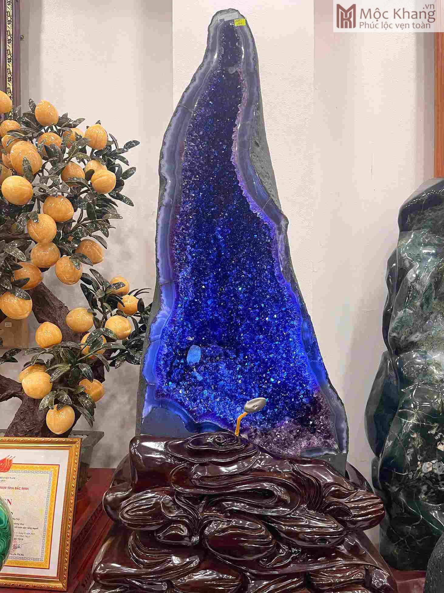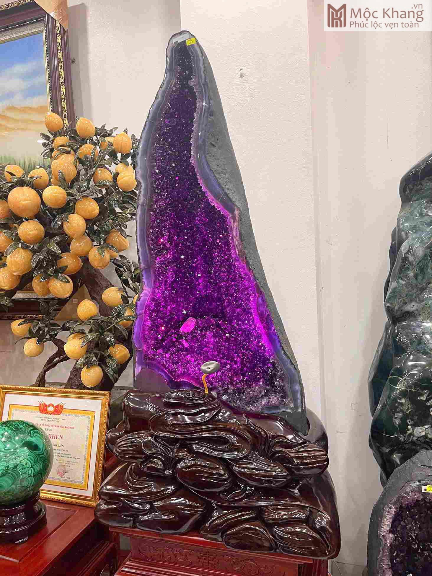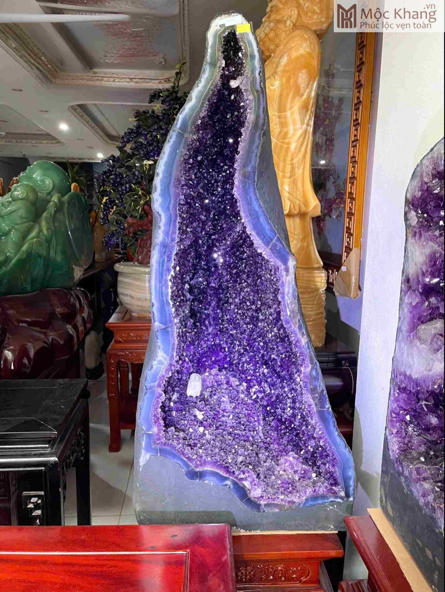 Động Thạch Anh Tím cao 96 Ngang 45 Sâu 30 (cm), nặng 111kg mang đến nguồn năng lượng tinh khiết và mạnh mẽ. Màu tím huyền bí tượng trưng cho trí tuệ, sự bảo hộ và thịnh vượng. Đặt tại phòng khách, phòng làm việc hoặc khu vực tài vị sẽ giúp chiêu tài, trấn trạch, hóa giải tà khí. Một tuyệt phẩm thiên nhiên dành cho gia chủ mong cầu bình an, phát đạt và trường thọ.