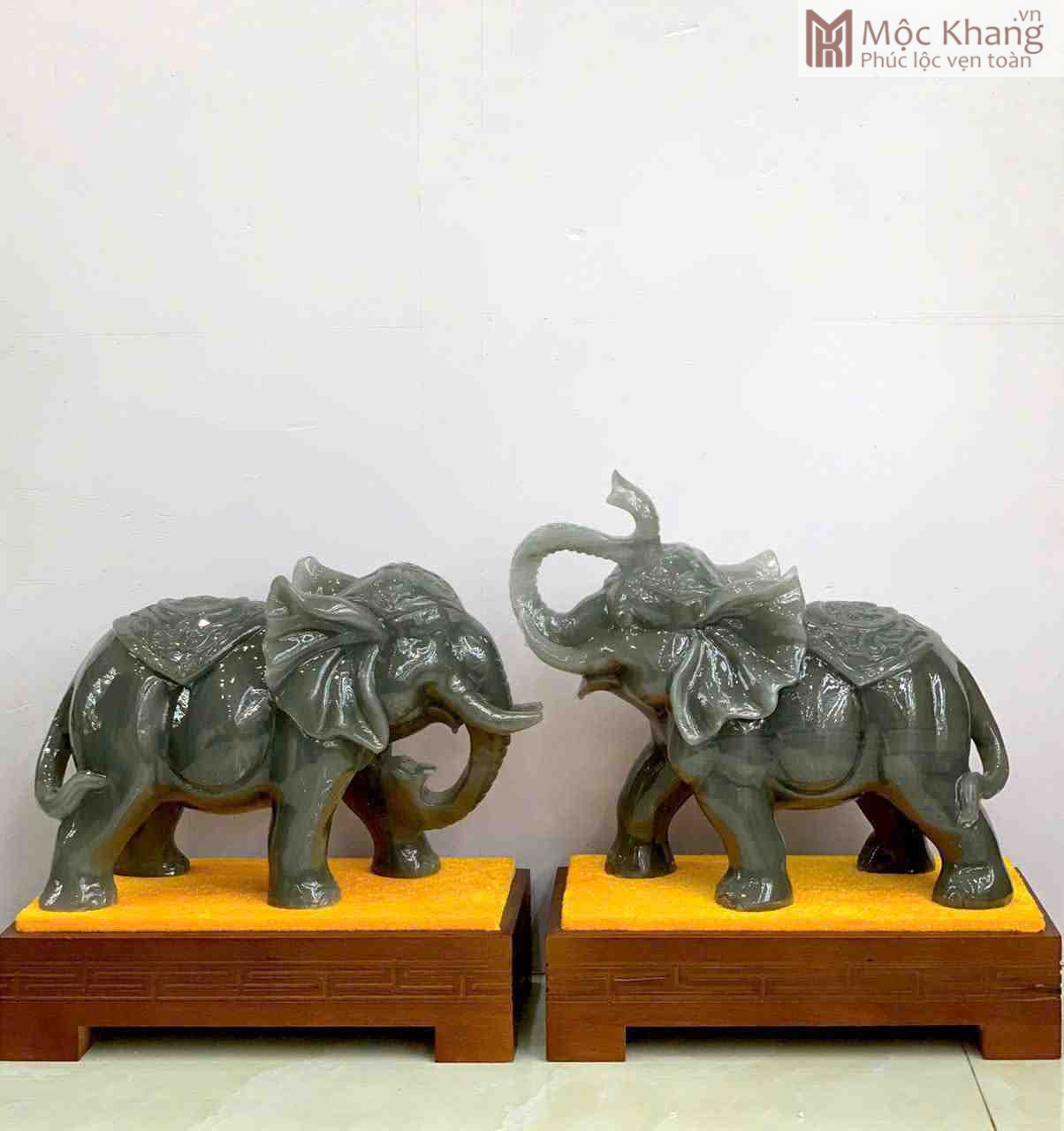 Đá ngọc xám Onyx, nổi bật với màu sắc huyền bí, cùng các vân đá tự nhiên, tạo nên một tác phẩm không chỉ đẹp mà còn mang ý nghĩa phong thủy tốt lành. Đôi voi đá Onyx còn là biểu tượng của sức mạnh, quyền lực và sự trường thọ, thích hợp làm quà tặng cho những người thân yêu hay trang trí cho không gian làm việc, nhà ở. Sự kết hợp giữa nghệ thuật điêu khắc và vật liệu quý hiếm giúp đôi voi đá Onyx trở thành món đồ trang trí đẳng cấp.